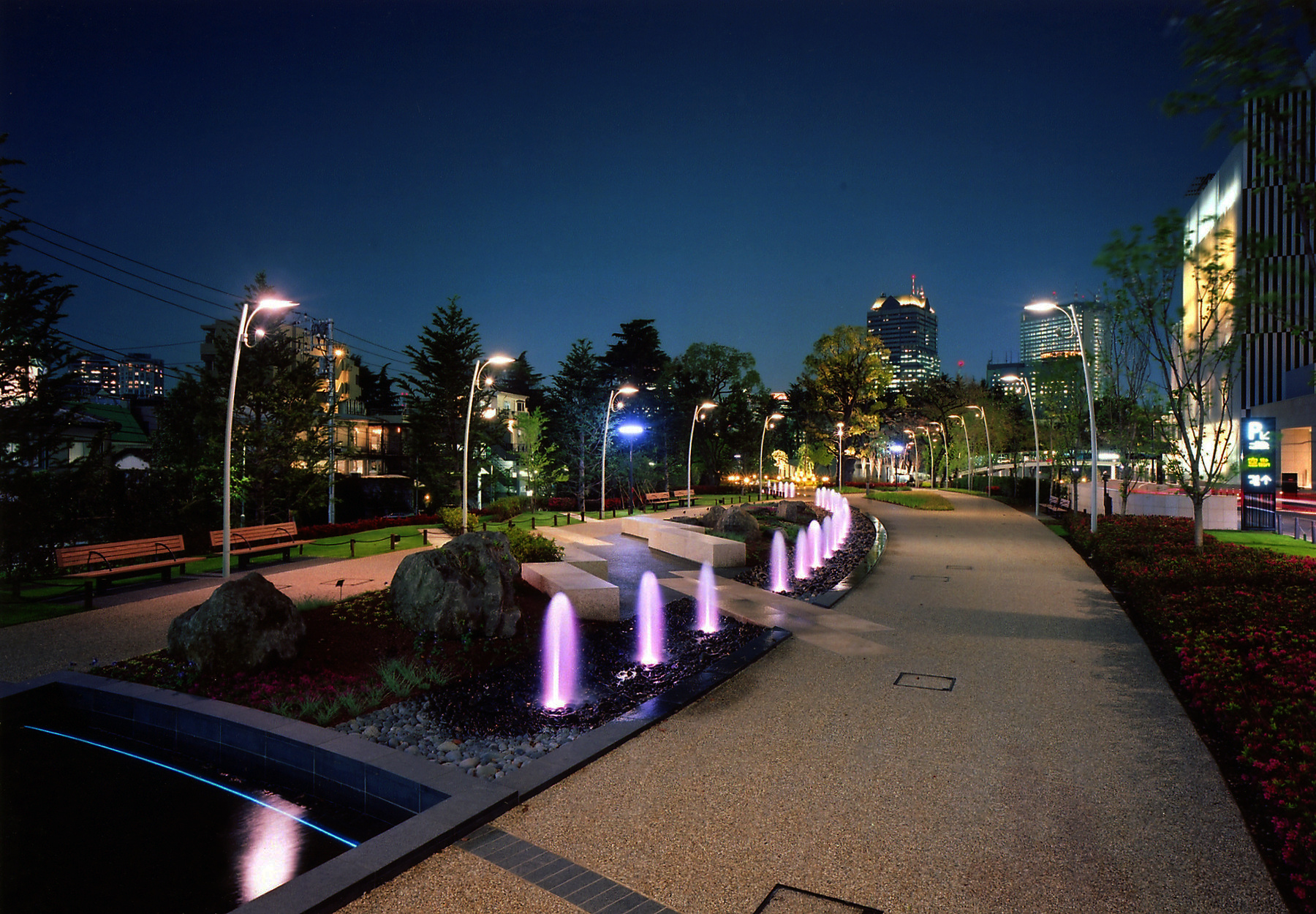ALG has been commissioned to collaborate with FMS of NY to tackle this huge project in heart of Tokyo. The site is very close proximity with already famous Roppongi Hills. Konishi has worked closely with Paul Marantz and have come up with very elegant yet exciting lighting schemes throughout the project. Paul and Konishi both share similar philosophy and concept in working together as a team. As the result they have successfully integrated their lightings into architectural concept conceived by SOM of New York and Nikken of Tokyo. One has to come to the site and enjoy new types of lighting experiences which is very different from the Roppongi Hills.