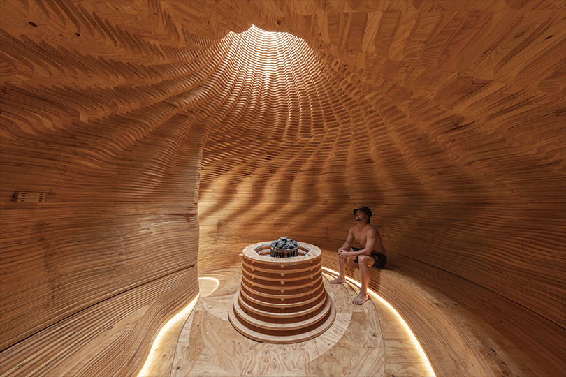 As part of the second phase of development, Architectural Lighting Group (ALG) was responsible for the lighting design, balancing sauna functionality with artistic expression.