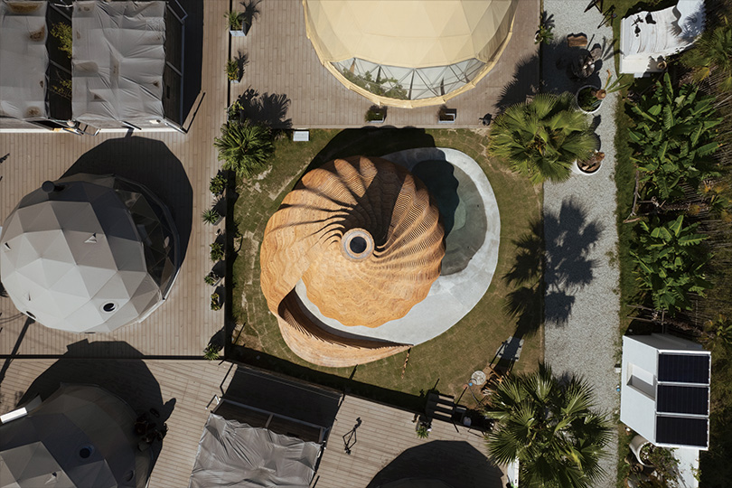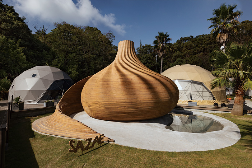 A new wooden sauna, “SAZAE,” has been introduced at SANA MANE, a resort-style glamping facility on Naoshima, known as a center of contemporary art.
